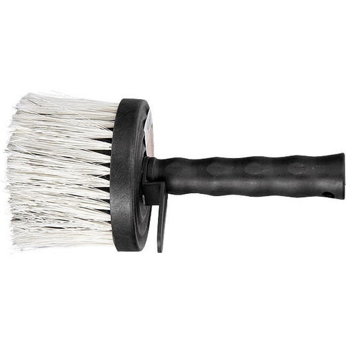 Круглая кисть-макловица MTX 84110, с искусственной щетиной, пластмассовыми корпусом и ручкой, предназначена для нанесения лакокрасочных материалов и клеевых составов на участки большой площади — стены, потолки, фасады. Искусственный ворс не впитывает воду и устойчив к растворителям, поэтому кисть подходит для работ с грунтовками, лаками, водно-дисперсионными и масляными красками. Преимущества Щетина тщательно проклеена и надежно закреплена в деревянном корпусе, поэтому не осыпается при многократном использовании. Щетина расщеплена на концах, за счет чего способна набирать и равномерно отдавать большой объем лакокрасочного материала. Полая рукоятка адаптирована под использование удлиняющих стержней, что позволяет проводить работы на большой высоте и в труднодоступных местах без использования подмостей или стремянки. При помощи специального выступа на рукоятке кисть можно закрепить на краю ведра, ванночки или банки с краской. Для удобства хранения предусмотрено отверстие в ручке, за которое кисть можно подвешивать. 300,00 ₽ / шт