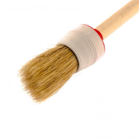Круглая кисть MTX №6 (30 мм) 82076 с натуральной щетиной и деревянной ручкой пригодится в быту для окрашивания узких длинных поверхностей. Светлая натуральная свиная щетина с добавлением искусственной обладает высокой износоустойчивостью и может использоваться для нанесения красок с содержанием растворителей, а также масляных красок и лаков. Преимущества Щетина двойной выварки обеспечивает высокое качество работы, т.к. не содержит включений жира и мелких частиц грязи. Расщепленная на концах щетина увеличивает способность кисти впитывать и отдавать ЛКМ, таким образом повышается эффективность работы. Пластиковый бандаж обеспечивает надежную фиксацию щетины и не подвержен коррозии. Рукоятка из отборной древесины прошла шлифовку и имеет защитное лаковое покрытие, поэтому с ней комфортно работать. На рукоятке предусмотрено отверстие для подвешивания, что обеспечивает удобство хранения. 60,00 ₽ / шт