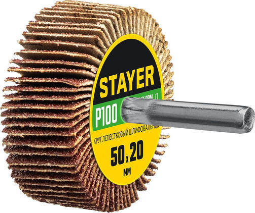 STAYER d 50 x 20 мм, P100, на шпильке d 6 мм, круг шлифовальный лепестковый (36607-100)