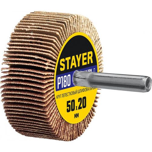 STAYER d 50 x 20 мм, P180, на шпильке d 6 мм, круг шлифовальный лепестковый (36607-180)
