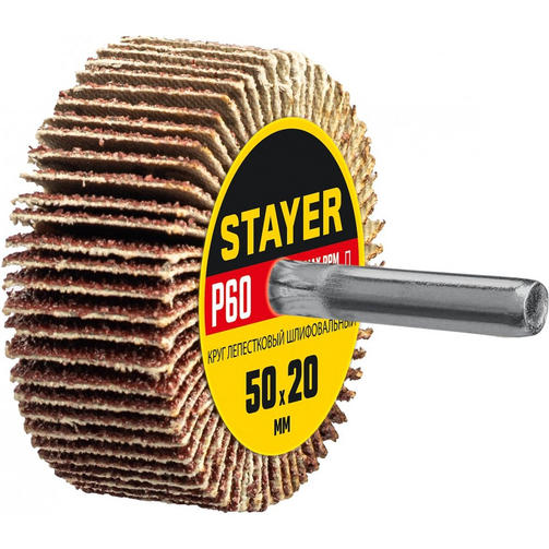 STAYER d 50 x 20 мм, P60, на шпильке d 6 мм, круг шлифовальный лепестковый (36607-060)