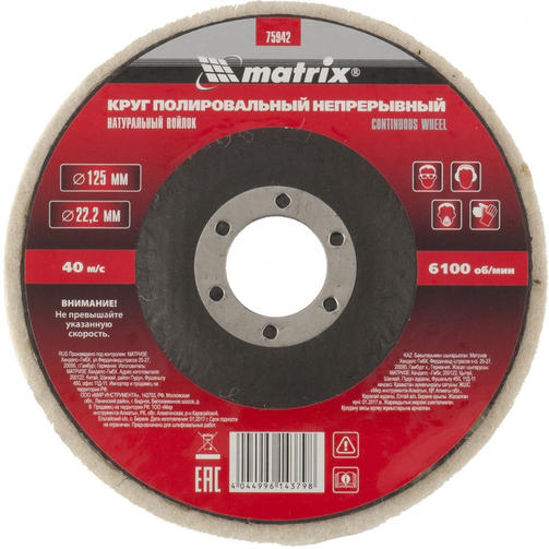Круг полировальный непрерывный из натурального войлока 125 х 22.2 мм Matrix 75942