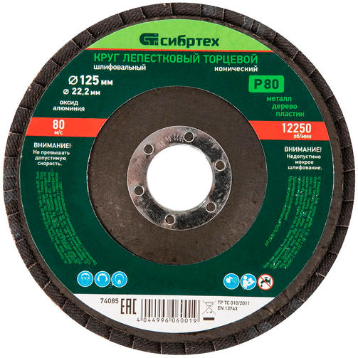 Круг лепестковый торцевой, конический, Р 80,125 х 22,2 мм. //СИБРТЕХ 74085