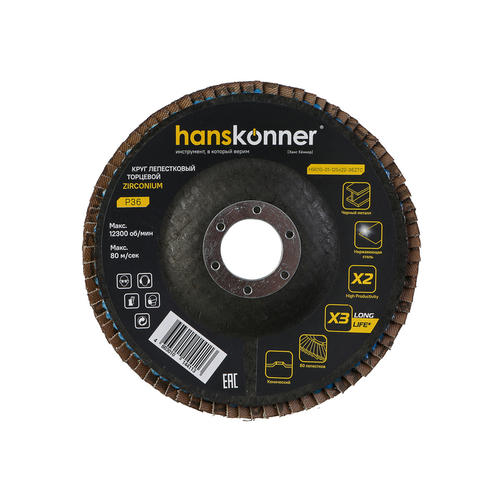 H9010-01-125x22-36Z Круг зачистной лепестковый ЦИРКОНИЕВЫЙ 125х22, зерно 36, Hanskonner