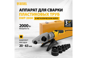 Аппарат для сварки пласт. труб DWP-2000, Х-PRO, 2000Вт, 300 град.,компл нас, 20-63мм// Denzel 94209