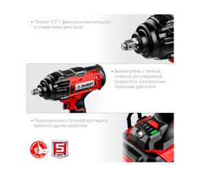 ЗУБР С1-18, 18 В, 400 Н·м, 1 АКБ (4 А·ч), гайковерт ударный, кейс (ГУЛ-410-41)