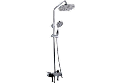 A2454 душевая стойка хром/чёрная смеситель с чёрной ручкой: латунь, картридж D=35 мм излив: поворотный 360° с аэратором дивертор: 3-х ходовой с керамическими пластинами, чёрный установочный комплект + штанга: сталь SUS201, H=750-1135 мм верхняя лейка: ABS, D=220 мм ручная лейка: ABS, D=100 мм, 3 режима шланг: 1500 мм, оплётка сталь SUS201 14 100,00 ₽ / шт
