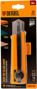 Нож, 25 мм, сменное лезвие, SK4, корпус из TPR, метал. направляющая, винтовой фиксатор/ Denzel 78945