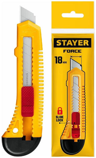 STAYER FORCE, 18 мм, нож упрочненный из АБС пластика со сдвижным фиксатором (0911)