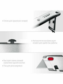 Металлический нож с трапециевидным лезвием А24, с автостопом ЗУБР 09228 - универсальный нож для реза различных материалов (линолеум, ковровые покрытия, гипсолитовые плиты, гипсокартон, кровельные материалы, пластик, дерево). Преимущества: Прочный металический корпус; Выдвижное лезвие с автоматической фиксацией для удобства работы; Быстрая смена лезвий нажатием одной кнопки; Трапециевидное двухстороннее лезвие из стали У8А с двойной заточкой; Отсек для хранения лезвий; Паз для реза веревок. Гарантия: 12 мес; Тип фиксатора: Автостоп; Тип корпуса: металлический; Материал лезвия: Сталь У8А; Тип лезвия: А24; Кассета с запасными лезвиями: да; Быстрая замена лезвий: Да. 475,00 ₽ / шт