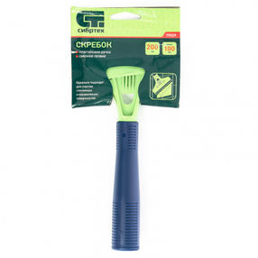 Скребок Сибртех 79529 длиной 200 мм, с лезвием шириной 100 мм, с пластиковой ручкой, — ручной инструмент для удаления старых лакокрасочных покрытий и загрязнений с керамических, стеклянных, металлических и прочих гладких поверхностей. Имеет двустороннее лезвие, острая сторона которого облегчает снятие остатков краски и лака, монтажной пены, удаление наклеек и жевательной резинки. Тупая сторона позволяет использовать скребок для удаления герметика, строительных смесей, шпаклевки и цемента. В случае износа лезвия нет необходимости приобретать новый инструмент, поскольку полотно можно заменить. Скребок пригодится во время ремонта, а также будет полезен в быту. Преимущества: Лезвие изготовлено из прочной углеродистой стали, что обеспечивает инструменту высокий ресурс работоспособности. Пластиковая рукоятка удобно лежит в руке, что повышает комфортность работы. Крышка, закрывающая лезвие, обеспечивает безопасность хранения и транспортировки инструмента. Лезвие надежно зафиксировано в корпусе, поэтому не расшатается и не выпадет во время работы. 210,00 ₽ / шт