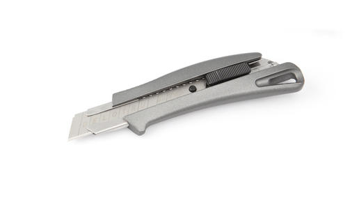 Усиленный нож со сменным лезвием 18 мм, алюминиевый корпус. Предназначен для разрезания жёстких материалов.. Продуманная эргономика ножа позволяет выполнять различные виды режущих работ. Направляющая из нержавеющей стали надёжно фиксирует лезвие при работе с материалами, требующими больших усилий при резке. Насечка на корпусе для надежной фиксации ножа в руке. Острый кончик. Защита от затупления режущей кромки. Защита от соскальзывания руки на лезвие. Автоматическая фиксация лезвия. 550,00 ₽ / шт