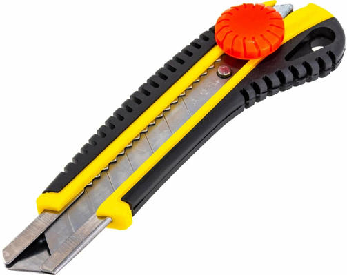 Универсальный нож для многоцелевого использования. Высококачественное острое лезвия и прочный, надежный корпус обеспечивают удобство и высокую скорость выполнения работ. Преимущества Двухкомпонентный противоскользящий корпус обеспечивает уверенный и надежный захват Винтовой фиксатор для большего усилия при резе сложных материалов Лезвия изготовлены из стали 65Mn и имеют двойную заточку, что обеспечивает длительный срок службы Использование Применяется для разрезания различных материалов Параметры Гарантия: 12 Материал корпуса: Пластиковый, обрезиненный Материал лезвия: Сталь 65Mn Тип фиксатора: Винтовой Тип лезвия: сегментированное Ширина лезвия, мм: 18 Модель: 09161_z01 Дополнительный винтовой фиксатор: нет 440,00 ₽ / шт