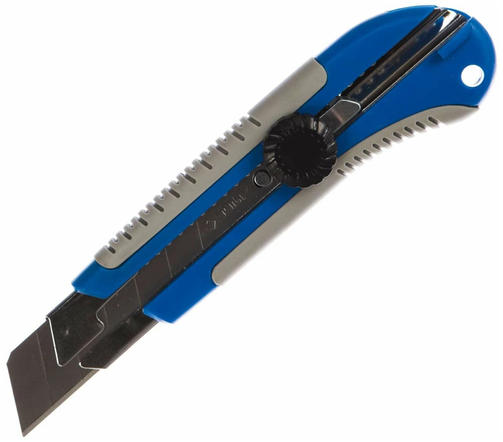 Профессиональный особомощный нож применяется для разрезания различных материалов: линолеума, ковровых покрытий, гипсолитовых плит, гипсокартона, кровельных материалов, пластика, дерева и т. д. Преимущества Усиленный двухкомпонентный противоскользящий корпус обеспечивает крепкий и надежный захват Винтовой фиксатор для большего усилия при резе сложных материалов Лезвие изготовлено из легированной стали У8А и имеет двойную заточку, что увеличивает срок службы Использование Применяется для реза различных материалов (линолеум, ковровые покрытия, гипсолитовые плиты, гипсокартон, кровельные материалы, пластик, дерево), с примененим значительных усилий. 924,00 ₽ / шт
