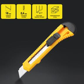 Строительный нож со сменными лезвиями применяется для разрезания различных материалов, таких как бумага, картон, линолеум, ковровые покрытия, гипсокартон, кровельные материалы, пластик и многого другого. Выполнен из качественных материалов, что обеспечивает долгий срок службы. 100,00 ₽ / шт