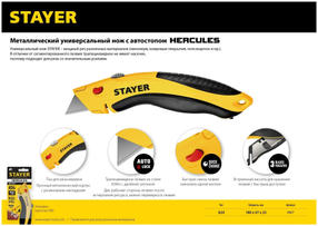 STAYER Hercules-A24, универсальный металлический нож с трапециевидным лезвием, Professional (0947)
