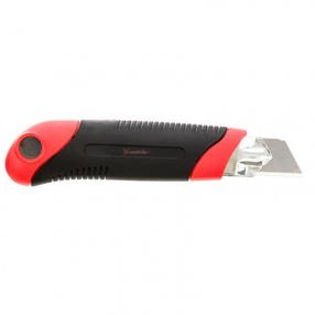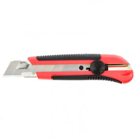 Нож Matrix 78913 в двухкомпонентном корпусе, с выдвижным лезвием шириной 25 мм, металлической направляющей, винтовым фиксатором и магнитом, применяется для разрезания картона, линолеума, ковролина, обоев, пленки, кожи и других мягких материалов. Лезвие выдвигается на необходимую длину и удерживается в этом положении при помощи винтового фиксатора. Нож пригодится при проведении отделочных и ремонтных работ, а также поможет в решении бытовых задач. Преимущества Лезвие толщиной 0,7 мм долго сохраняет режущую способность, т.к. изготовлено из высокоуглеродистой стали 60. Затупившемуся лезвию легко вернуть остроту — на полотно нанесены насечки, позволяющие удалить изношенный сегмент. Во время работы полотно сохраняет ровное положение благодаря металлической направляющей, что позволяет прикладывать значительные усилия без риска поломки инструмента. Двухкомпонентная рукоятка надежно фиксируется в руке благодаря вставкам с рифленой поверхностью. Конструкцией ножа предусмотрена возможность замены лезвий, поэтому инструмент рассчитан на длительную эксплуатацию. Замена полотна осуществляется вручную через хвостовую часть и занимает несколько секунд. 281,00 ₽ / шт