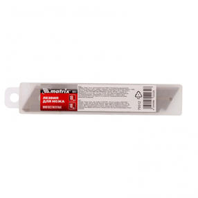 Многосегментные лезвия Matrix 79312 шириной 18 мм и длиной 109 мм, 10 шт. в упаковке, - запасные части к монтажным ножам соответствующего типоразмера. Ими можно резать твердые материалы, линолеум, пластик, гипсокартон, а также бумагу, пленку, картон. Лезвия используются при проведении строительных и отделочных работ, а также применяются в хозяйственных целях. Преимущества Лезвия изготовлены из высокоуглеродистой стали толщиной 0,5 мм, что придает им прочность и износостойкость. Каждое лезвие остро заточено и долго служит без замены - если оно затупится, нужно всего лишь отломить отработавший сегмент. Расходники упакованы в ПВХ-пенал, что очень удобно для хранения. В упаковке 10 штук, их хватит надолго. 150,00 ₽ / шт