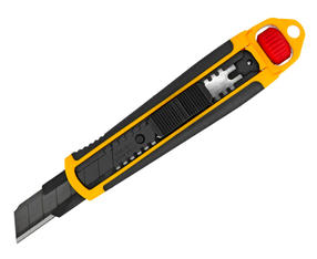 Нож выполнен в корпусе из ABS-пластика со вставками из термопластичной резины TPR, оснащен сменным лезвием шириной 18 мм, изготовленным из стали SK4 по технологии UltraSharp, и торцевым зажимом. Сверхострое выдвижное лезвие легко режет линолеум, ковролин, бумагу, обои, картон и другие листовые материалы. Нож будет полезен для проведения профессиональных ремонтных и отделочных работ, пригодится также в домашнем хозяйстве. Благодаря сегментной структуре полотна работоспособность ножа быстро восстанавливается: достаточно отломить затупившийся сегмент по линии насечки при помощи плоскогубцев или другого шарнирно-губцевого инструмента. Во избежание травм при обламывании необходимо использовать средства индивидуальной защиты (очки и перчатки). 564,00 ₽ / шт