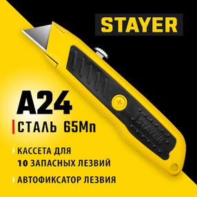 STAYER A24, универсальный металлический нож с трапециевидным лезвием (0921)