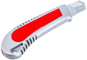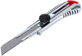 Профессиональный металлический нож применяется для разрезания различных материалов: линолеума, ковровых покрытий, гипсолитовых плит, гипсокартона, кровельных материалов, пластика, дерева и т. д. Преимущества Металлический корпус позволяет прикладывать значительный усилия при резе и обеспечивает максимальную надежность конструкции Механическая фиксация лезвия обеспечивает уверенный и точный рез. Лезвие изготовлено из легированной стали У8А с двойной заточкой Использование Применяется для разрезания с приложением значительных усилий различных материалов: линолеума, ковровых покрытий, гипсолитовых плит, гипсокартона, пластика, кровельных материалов, дерева. 630,00 ₽ / шт