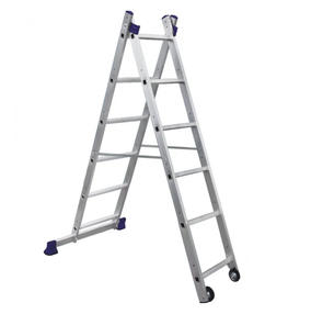 Лестница-помост 3 в 1 97970 необходима для проведения малярных и штукатурных работ на высоте нескольких метров. Площадка выдерживает нагрузку 150 кг, поэтому на ней может расположиться мастер с необходимыми инструментами. Приспособление трансформируется в двустороннюю стремянку и раздвижную приставную лестницу, что расширяет возможности его использования. Преимущества Лестница изготовлена из алюминиевого профиля в ней сочетаются прочность и небольшой вес 11,6 кг. Подмости стоят ровно благодаря поперечным траверсам. За счет пластиковых заглушек лестница не скользит, а о края опор нельзя пораниться или повредить одежду. Ступеньки надежно соединены с опорами за счет многократной развальцовки. Площадку можно устанавливать на разных уровнях опор, что дает возможность располагать подмости на лестничном пролете. Выдвижная секция крепко удерживается алюминиевыми кронштейнами, поэтому использование лестницы совершенно безопасно в любых положениях. Рифленая поверхность ступенек препятствует скольжению. Лестницу-помост легко перевозить благодаря двум транспортировочным колесам. Удобство хранения и транспортировки в сложенном виде лестница занимает мало места. 12 934,00 ₽ / шт