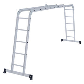 Лестница-трансформер алюминиевая Новая Высота NV 1320, 4х5 перекладин, ширина 340 мм (1320405) - алюминиевая лестница трансформер, предназначенная для домашнего использования, отличается лёгкостью и прочностью, благодаря чему прекрасно подходит для проведения ремонта или уборки в доме, причём варианты её использования очень разнообразны. Особенности: Лестница трансформер Новая высота имеет стойки и ступени, которые изготовлены из прессованного алюминиевого профиля. Отличительной чертой данного трансформера является его прочность и надёжность, несмотря на относительно малый вес лестницы. Максимальная нагрузка 120 кг K - Максимальная нагрузка (положение помост) 100 кг Количество секций 4 Количество ступеней 5 15 800,00 ₽ / шт