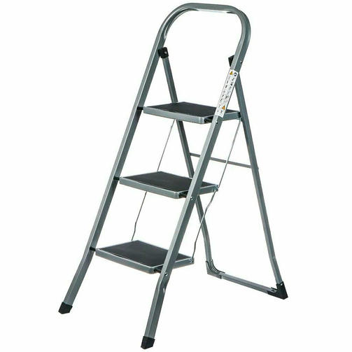 Металлическая стремянка 3 ступени создана для повседневных задач дома и ремонтных работ. Прочный стальной каркас обеспечивает ее долговечность и стойкость к механическим воздействиям. Она не подвержена прогибам и деформациям. Стойки из стального профиля покрыты порошковой краской, что предотвращает коррозию и помогает сохранять чистыми руки и контактирующие поверхности. Высота площадки составляет 0.7 метра. В рабочем положении расстояние между стойками составляет 0.46 метра. Лестница стремянка может выдерживать максимальный вес 150 килограмм. Стальная площадка позволяет удобно размещать инструменты. Ступени из стальных рифленых прутьев шириной 460 миллиметров с дополнительными ребрами жесткости обеспечивают легкость и надежность конструкции. При установке стремянки упор площадки из стального стержня с фиксатором точно встает в пазы и предотвращает возможность повреждения пальцев. Заклепочное соединение на ступеньках гарантирует высокую статическую и динамическую прочность стремянки. Закругленные безопасные края ступеней и площадки уменьшают контакт с голенями, а также снижают риск получения травм. Пластиковые заглушки на ступенях, имитирующие рельеф, служат долго и скрывают острые края. Укрепленное соединение стоек сзади завершает картину надежной и безопасной лестницы-стремянки. 3 400,00 ₽ / шт