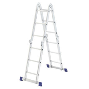 Шарнирная алюминиевая лестница Сибртех 97881 представляет собой 4 секции по 3 ступени, которые можно настроить в нескольких рабочих положениях. Она может использоваться в качестве приставной лестницы, двухсторонней стремянки и помоста. Будет полезна как в быту, так и на небольших стройках, в гараже и магазинах. Преимущества Широкие траверсы — лестница устойчиво фиксируется на горизонтальной поверхности в любом рабочем положении. Противоскользящее рифление на ступенях — пользоваться лестницей безопасно, нога не соскользнет в процессе выполнения работ. Сочетание легкости и прочности — рама изготовлена из прессованного алюминиевого профиля прямоугольного сечения, выдерживает нагрузку до 120 кг. Надежные шарнирные механизмы — лестница не шатается в рабочих положениях, смена рабочих положений происходит быстро и легко. Габариты в сложенном состоянии 940 х 340 х 280 мм — лестницу удобно хранить и транспортировать. 13 600,00 ₽ / шт