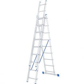 Лестница, 3 х 9 ступеней, алюминиевая. трехсекционная, Россия//СИБРТЕХ 97819