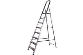 Алюминиевая стремянка STAIRS 8 ступеней AS08 предназначена для различных работ на высоте. Конструкция из алюминия отличается высокой прочностью, небольшим весом и устойчивостью к воздействию коррозии. Ступени и рабочая площадка с рифлением защищают от скольжения ноги и обеспечивают безопасность работы. Страховочные ремни надежно фиксируют стремянку на месте. Компактное хранение. Складная конструкция не займет много места при хранении или транспортировке. 8 ступеней; • Алюминиевый профиль прямоугольного сечения 30х20х1,2; • Ступени расположены на одной паре стоек (односторонняя); • Дуга безопасности 600 мм.; • Площадка 265х265 мм.; • Ступени глубиной 80мм.; • Противоскользящий рельеф площадки и ступеней; • Боковые пластиковые заглушки ступеней; • Опорные наконечники из пластика повышенной прочности; • Вес 5,29 кг.; • Габаритные размеры 100х520х2355 мм.; • Высота рабочей площадки 1725 мм.; • Рабочая высота 3,72 м.; • Максимальная допустимая нагрузка 150 кг.; • Произведено в России. 7 600,00 ₽ / шт
