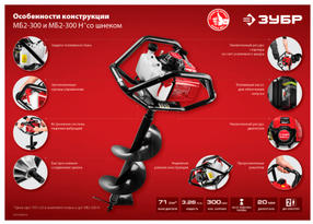 ЗУБР d 60 - 300 мм, 71 см3, 2 оператора, мотобур (бензобур) (МБ2-300)