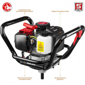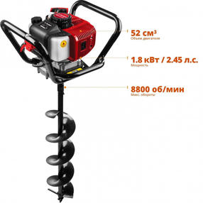Преимущества Все органы управления расположены на одной рукоятке для удобного управления рабочим процессом Топливный насос для облегчения запуска Воздушное охлаждение двигателя Надежная рамная конструкция Быстросъемное соединение шнека Полупрозрачный топливный бак для контроля за расходом топлива Система гашения вибрации Емкость для приготовления рабочей смеси в комплекте Инструмент управляется одним оператором Шнек в комплекте Описание Простой и надежный мотобур для бурения различных грунтов и льда. Активно применяется в строительной и хозяйственной деятельности и позволяет сделать скважину качественно и в короткие сроки. Оснащен мощным 2-х тактным мотором и системой легкого запуска. Оперативная замена шнека позволяет легко адаптировать мотобур под решение разного вида задач. Прочная сварная рама, удобная для работы, обеспечивает дополнительную сохранность двигателя при работе. Применение Для бурения мягких, твердых и мерзлых грунтов, а так же бурения льда при монтаже столбов, заборов, ограждений и других целей связанных с бурением грунта 18 790,00 ₽ / шт