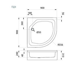 Акриловый - поддон ПД4 90*90*31 средний полукруг (в сборе экран+каркас, БЕЗ СИФОНА)