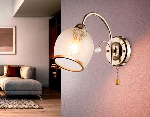Настенный свет-к с выключателем TR3195 GD/CL/FR золото/прозрачный/белый E27 max 40W 190*110*290